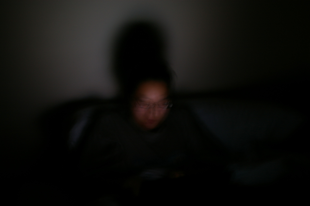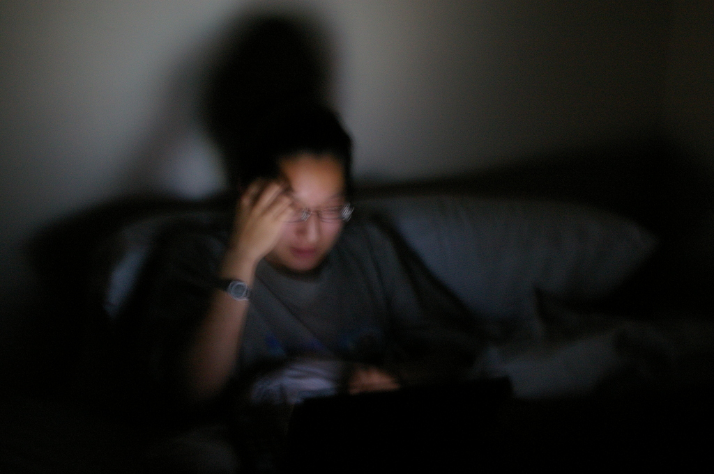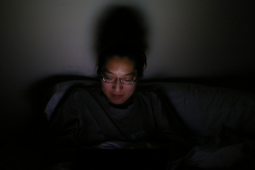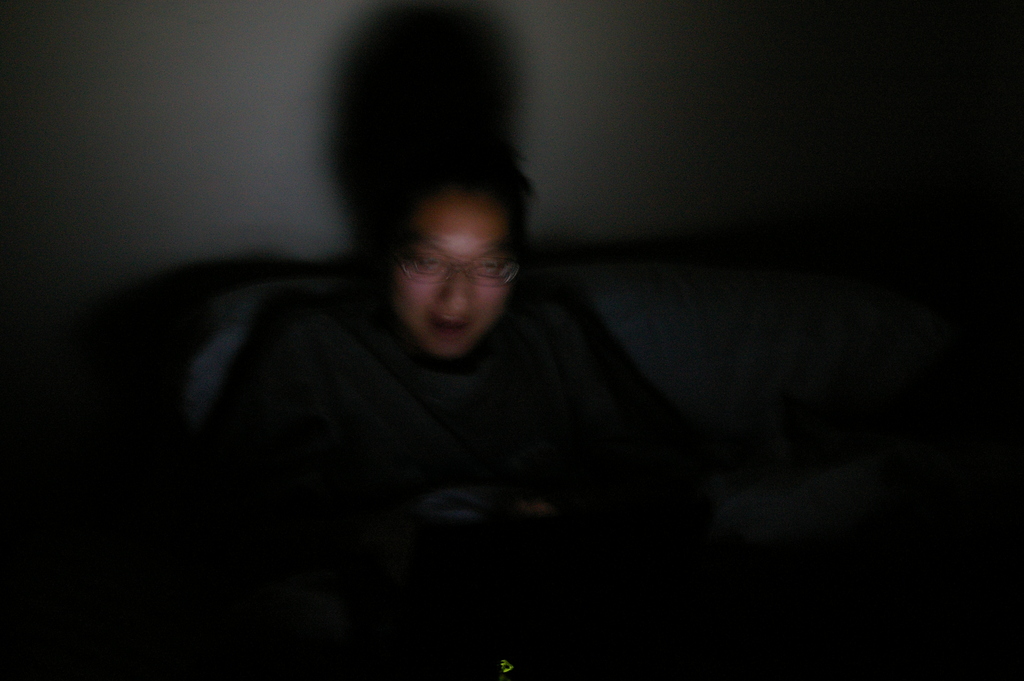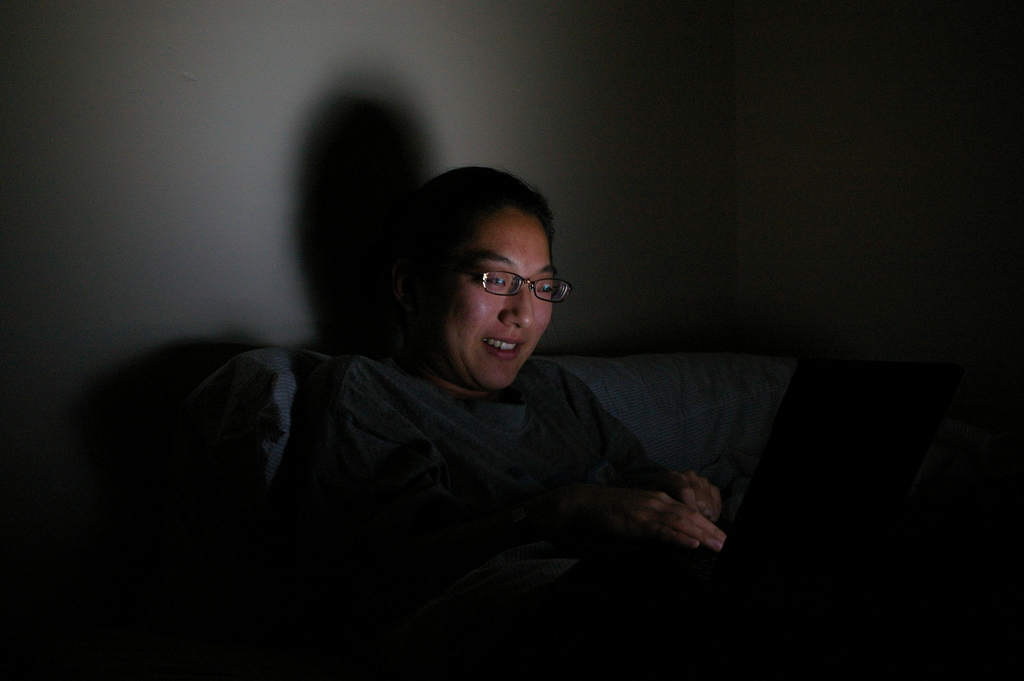 Interesting lighting coming from a laptop in a dark room.
